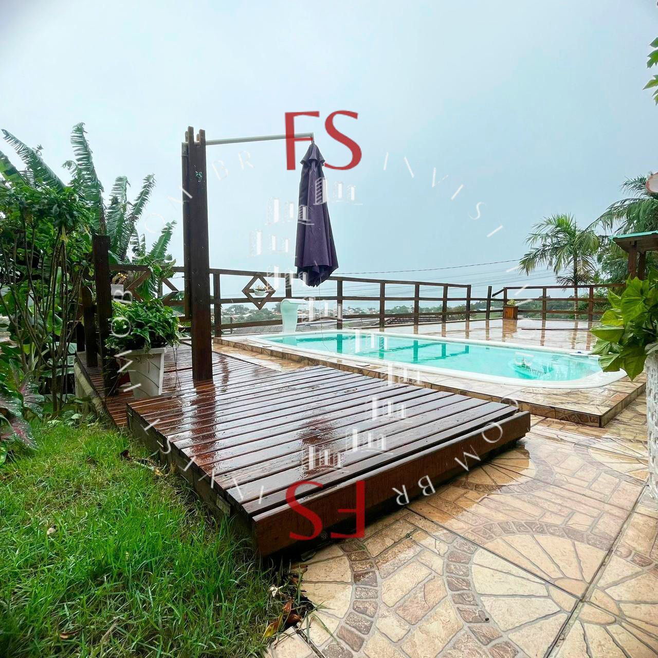 garagem coberta, com capacidade para até 5 carros.