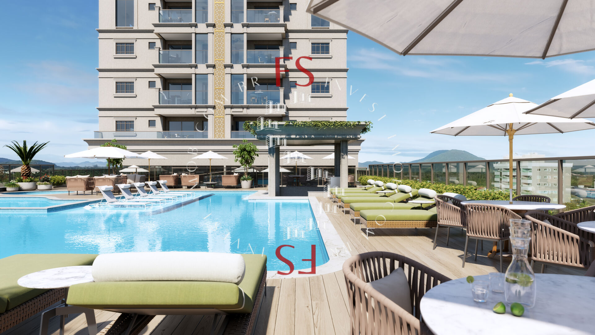 - Piscinas adulto e infantil com deck